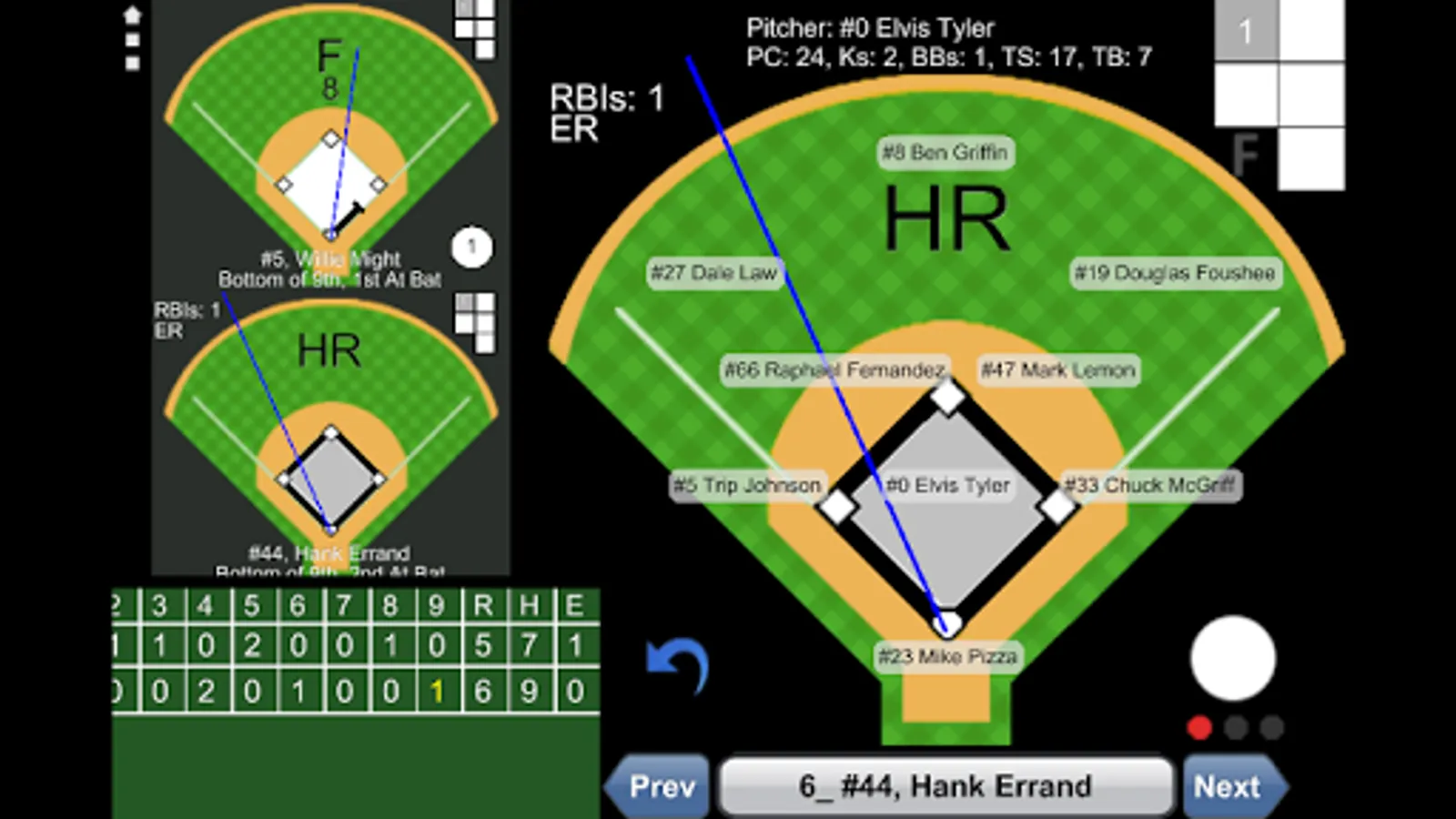 This versatile app lets you bat as many as you like and field up to 10 positions, optionally use non-standard strikes per out and balls per walk, outs per inning, innings per game, and run limits.