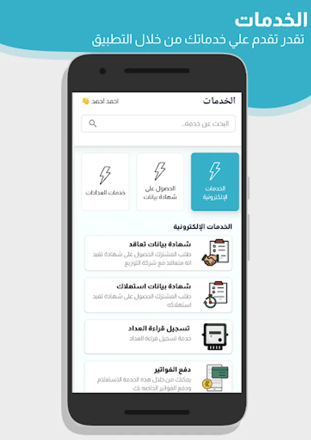 The application of smart services for electricity is designed to be compatible and integrated with all other electronic services provided to the citizen, which enables him to apply for his own services electronically, through an integrated and secure digital system that depends on the application of the standards of effective use that the citizen needs, and the provision of electronic payment services to citizens in ease and ease. The application allows integration with electronic payment service providers and banking systems, as it allows citizens the ability to follow up on the status of providing their services at any time and anywhere without the need to go to service centers.