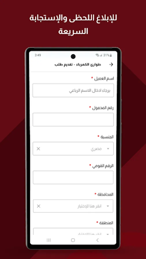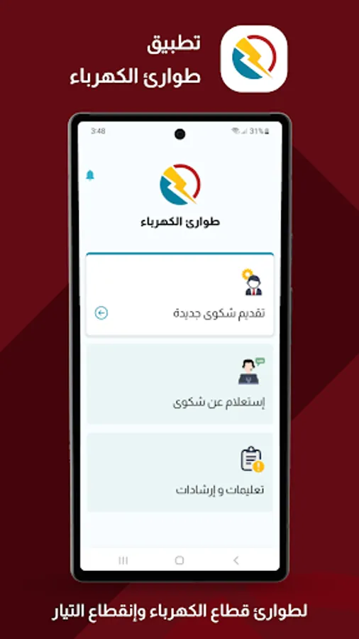 Electricity emergency application of the unified platform for electricity services for instantaneous reporting and rapid response to electricity sector service emergencies and power outages to ensure technical intervention and respond to inquiries
