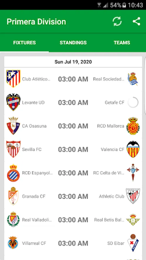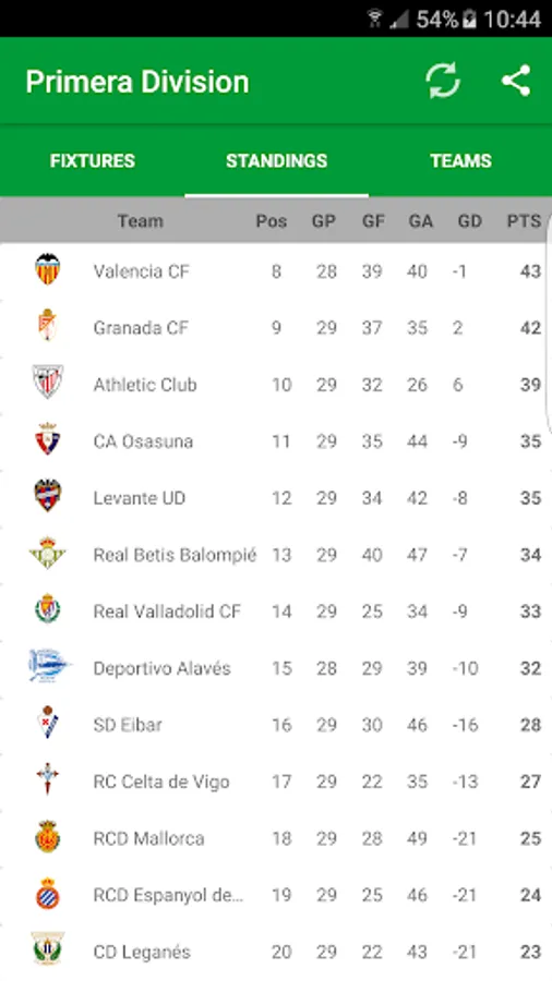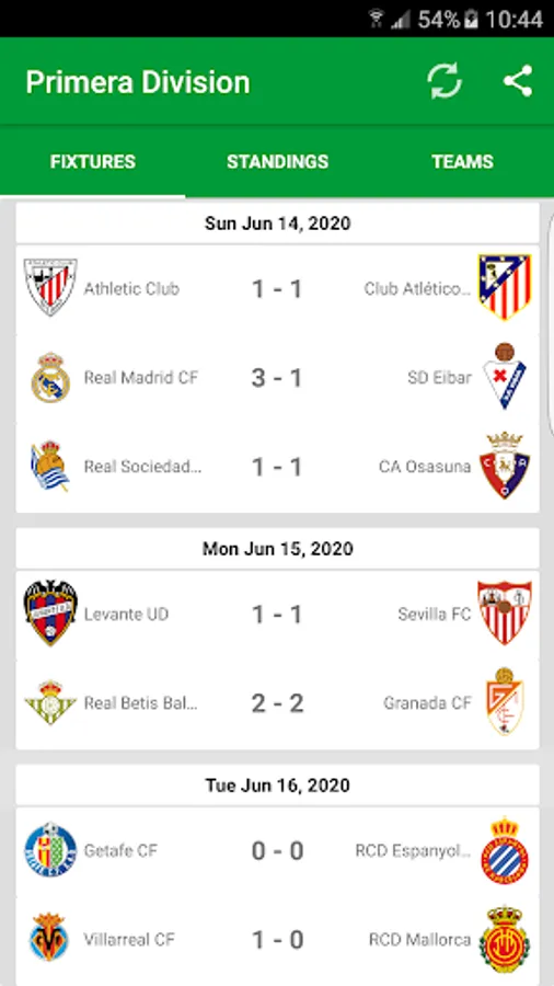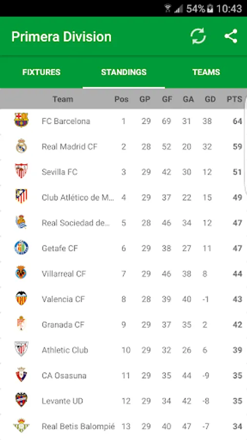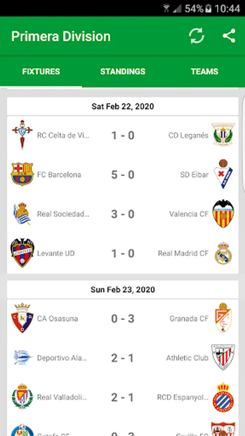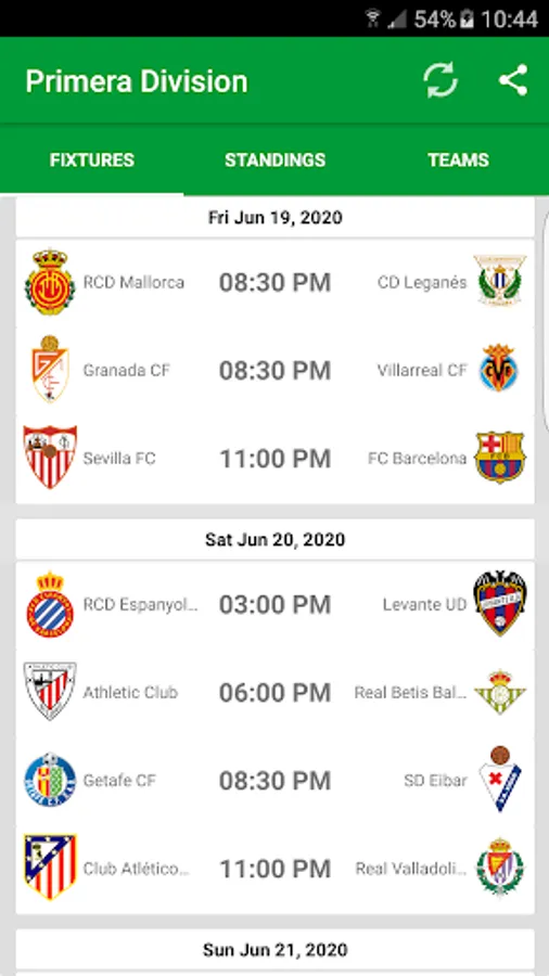 The complete Primera División (First Division) of the Liga Nacional de Fútbol Profesional (LFP) fixture for the Spanish current season.