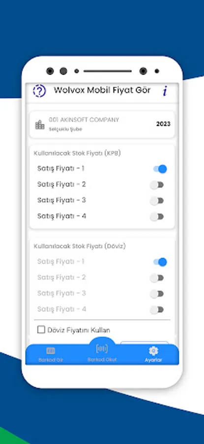 * Thanks to the settings in the AKINSOFT Mobile Price View application, the stock price to be used and the foreign currency price to be used can be determined and the displayed price information can be shown as VAT Included or VAT excluded.