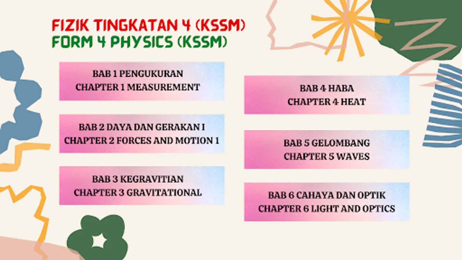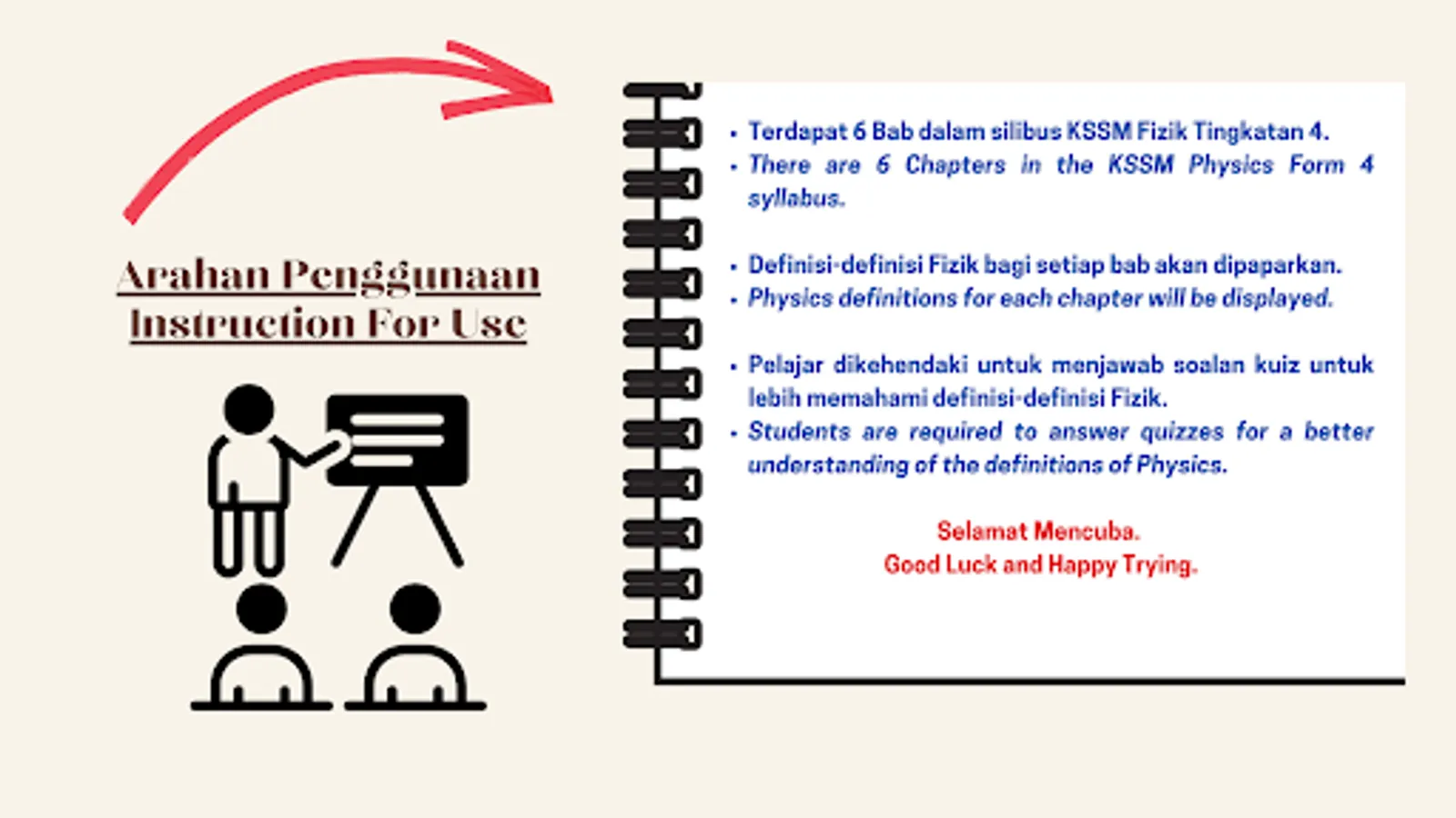 This application is mainly focused on the definition for all Form 4 Physics Terms that are stated in the KSSM Syllabus. It can be used as a revision tool for students who are going to sit for SPM Examination. Good Luck and Happy Trying.