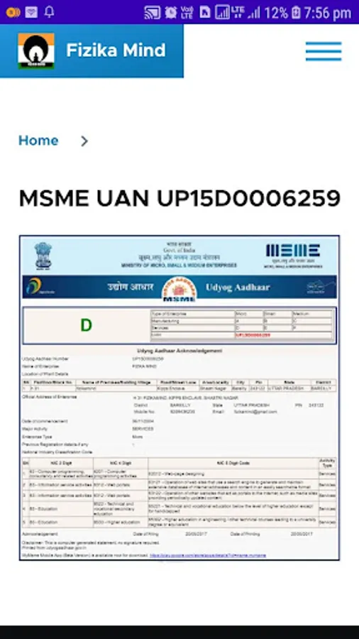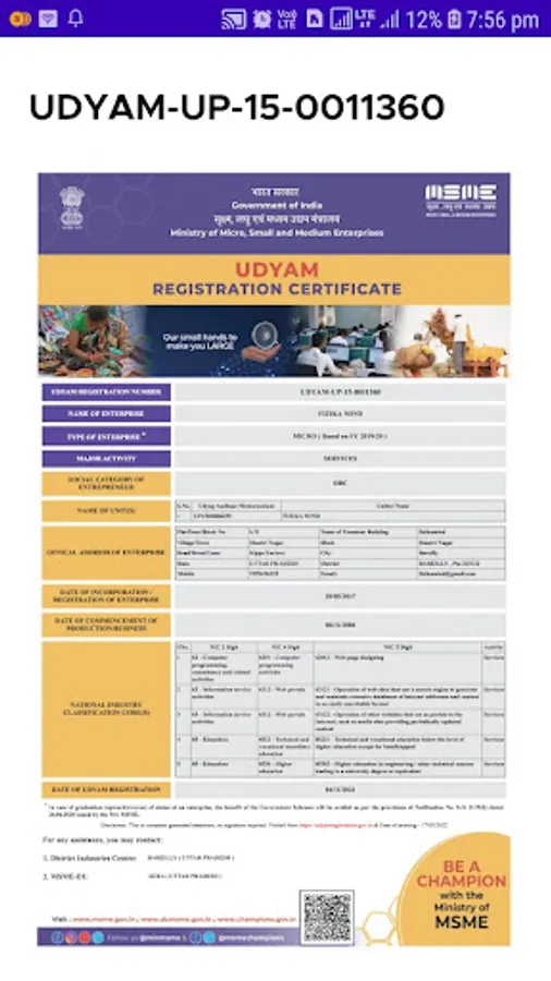 MSME UAN UP15D0006259