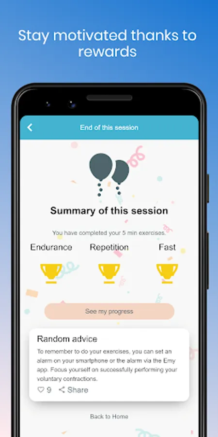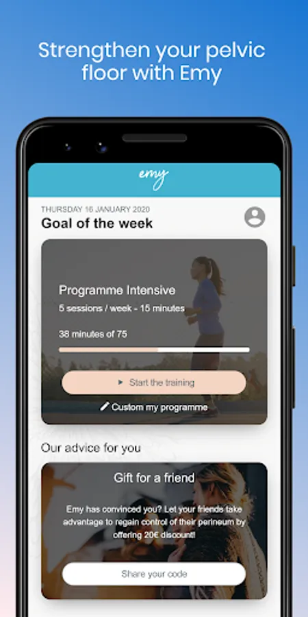 Emy is a free mobile application: an effective and easy way to strengthen your pelvic floor muscles! You can do your Kegel exercises wherever and whenever you want, with or without the smart Kegel trainer Emy.