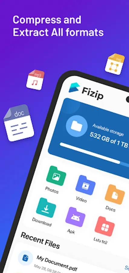 Let's compress and extract all file formats with just 1 compact application, no need for a PC or laptop.
