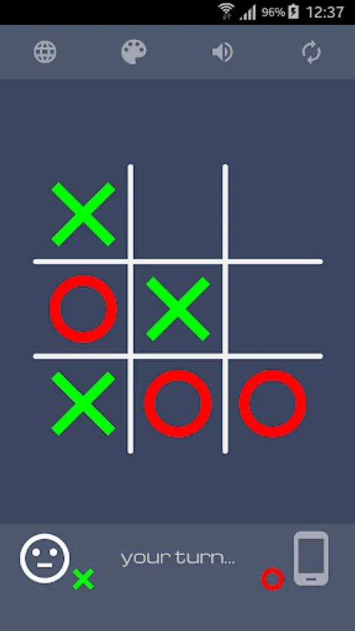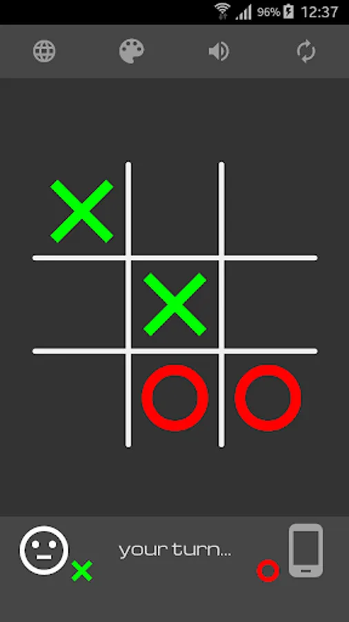 Play noughts and crosses, also known as tic-tac-toe, against your smart phone or tablet just for fun!