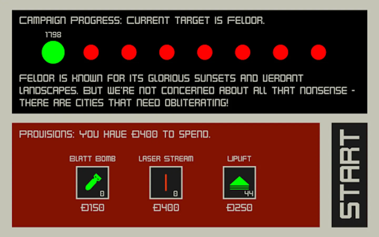 • Earn Ðosh each time you destroy a city without wasting a single bomb.