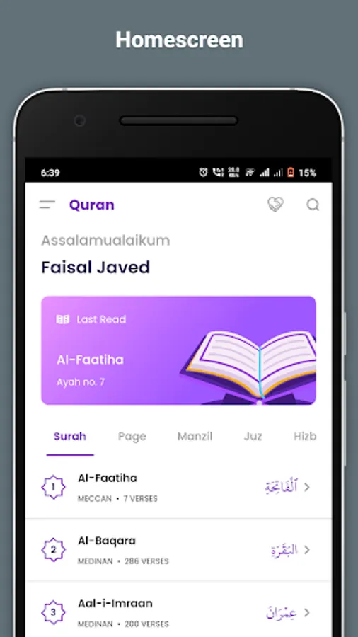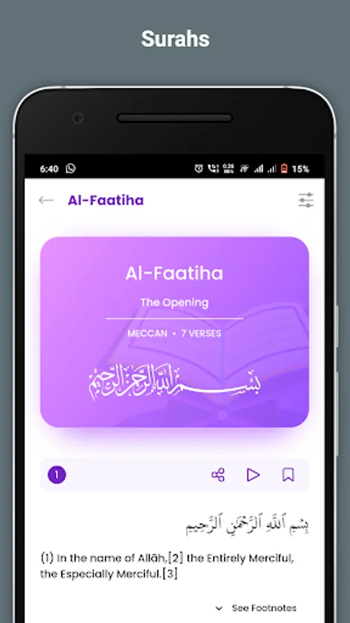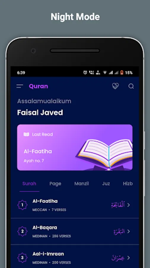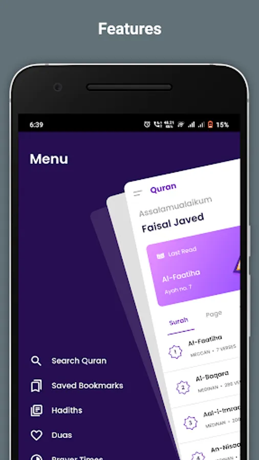 Quran is a free Quran application for Android devices. There are many features under development. Please send us your feedback and feature requests and keep us in your prayers!