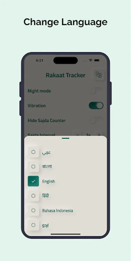 For added convenience, our PocketSense mode allows you to track your rakaat discreetly. Just place your phone in your pocket and press the power button to hear the sound indicating the rakaat number. No disturbances, no distractions—just effortless monitoring of your rakaat count.