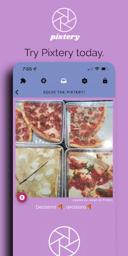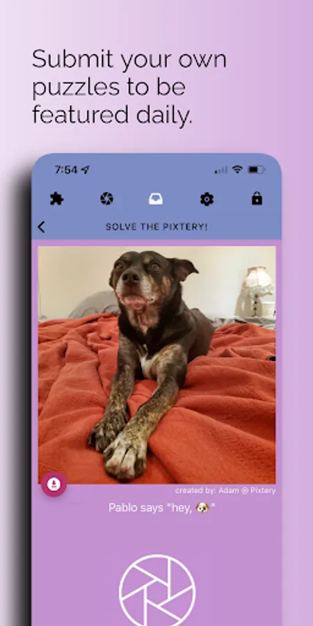 Snap a photo or choose an image from your device, include a secret message, and share the link by text, email, or platform of your choice. You can also submit the puzzles you create to be featured as the puzzle of the day to be solved by everyone who has Pixtery!