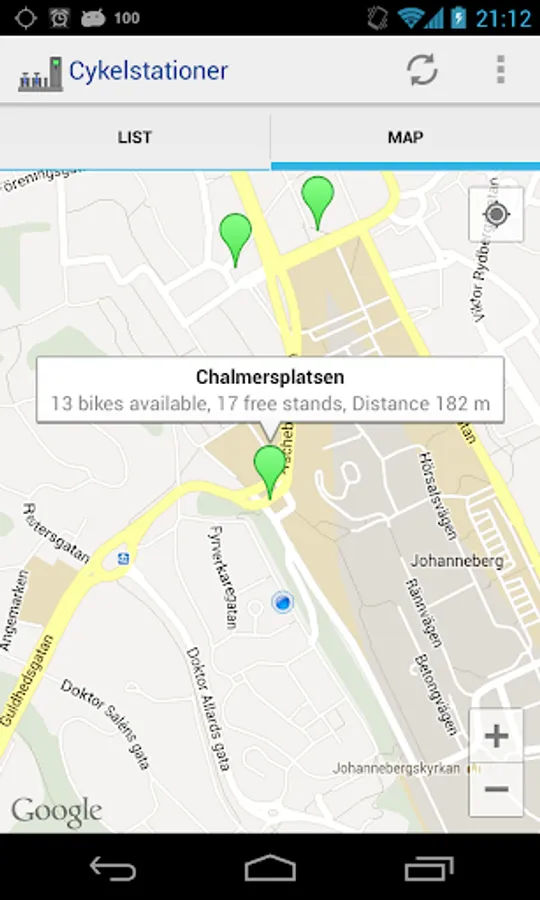 Cykelstationer is an app to help you find Styr & Ställ public bicycle stations in Gothenburg, Sweden.