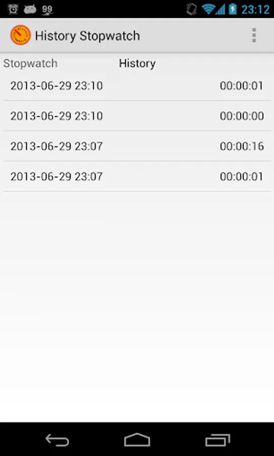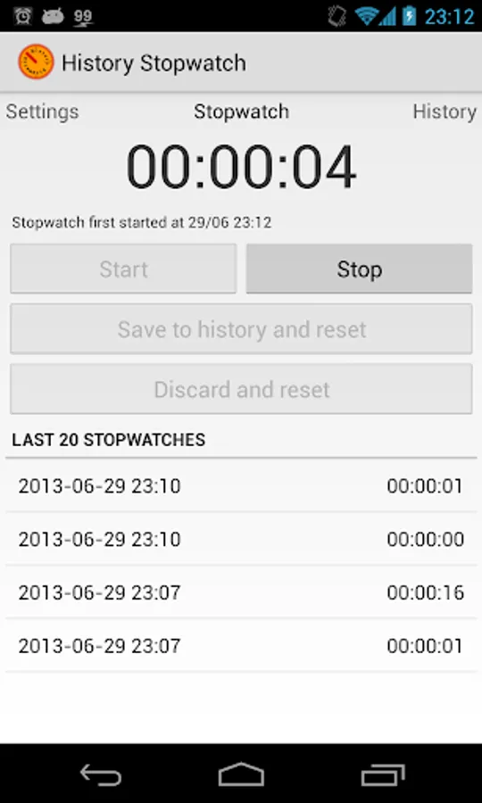 * The stopwatch uses relative time measurement, so you can turn off your device and even take out the battery and the stopwatch will still continue to run. Hence, this stopwatch is battery time friendly.