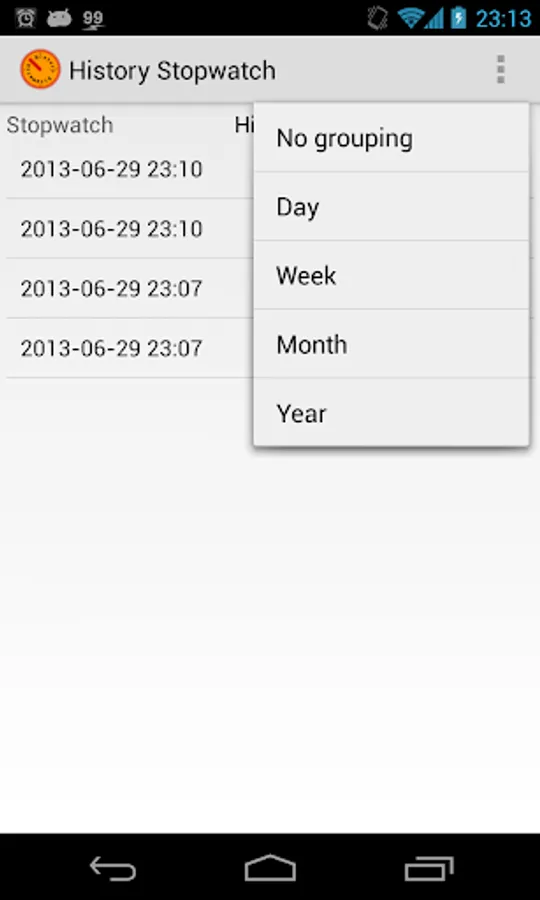 * It's possible to group history stopwatches by day, week, month or year, or no grouping.