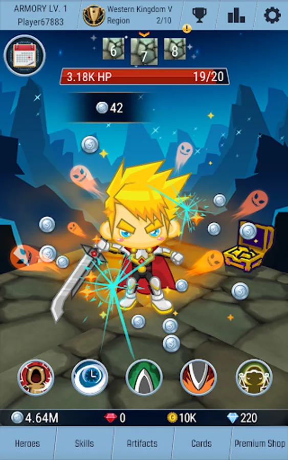 Level up your main idle hero and conquer the kingdom! Boost your weapons, use special magic spells, craft new artifacts, and collect fantasy equipment. Take and sharpen your swords! Wear your armor, because the war against the dragons begins! Brawl out!