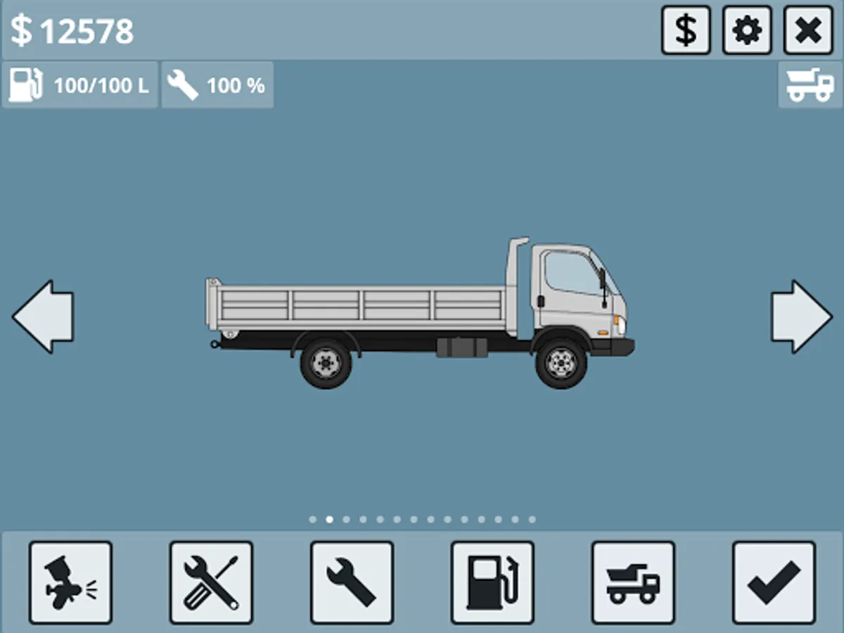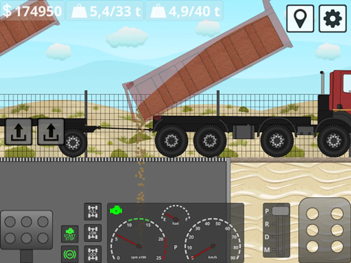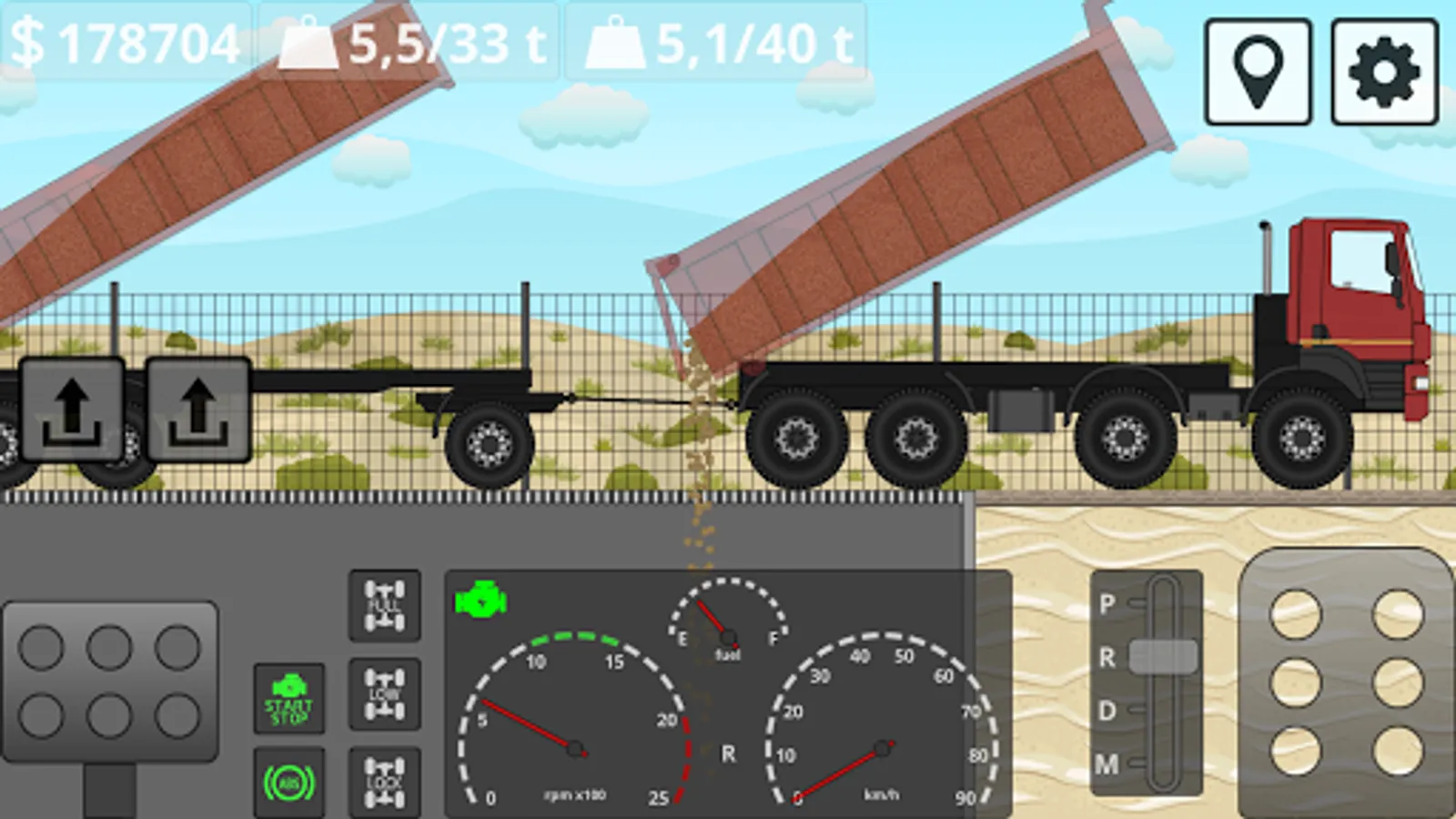 There are several vehicles with different specifications and load capacity in the game. Several types of equipment are available for cars: a tipper, a flatbed, a tank and a fifth wheel coupling. Also, a trailer can be joined additionally.