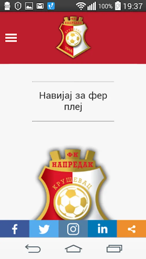 Football club Napredak in Krusevac was founded on 8 December 1946 by the merger of three existing local clubs - 14 October, Badza and Zakića.