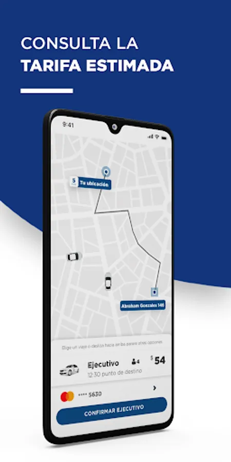 We automatically obtain your location, just search for your destination and choose the payment method.