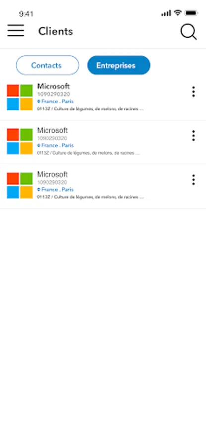 Consult, modify, add your data:, view on a list or on a Maps your contacts, your company files, and all your histories, all your modifications are updated in real time.