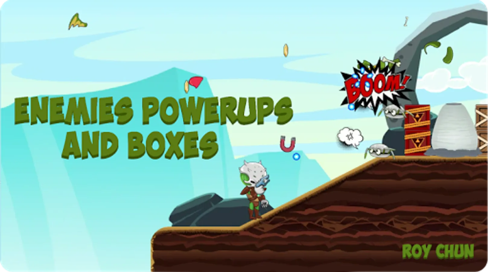 Traps, trampolines, 6 types of enemies, boxes, explosives and much more!