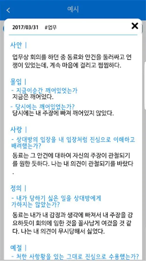 네이버 카페 홍익학당(cafe.naver.com/bohd)에 오셔서 '인문학으로 살아가기', '양심실전분석', '문화메이커들의 양심작품 창작노트' 등을 검색하시면 보다 많은 양심노트 작성 사례를 참고하실 수 있습니다.