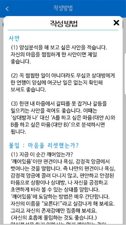 - 양심노트를 작성하고, 저장/관리하며, 텍스트로 카톡, 페이스북 등 다른 어플리케이션에 공유할 수 있습니다.