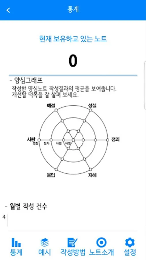 - 양심노트 작성 : 양심노트를 작성하고, 양심그래프를 그릴 수 있습니다.(간편노트 작성하기 포함)
