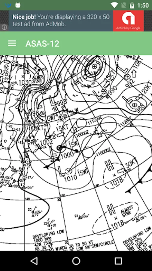 * The weather map in the extended menu is displayed first at 12 o'clock UTC. If there are weather maps for other times, you can browse them by swiping the screen and moving.