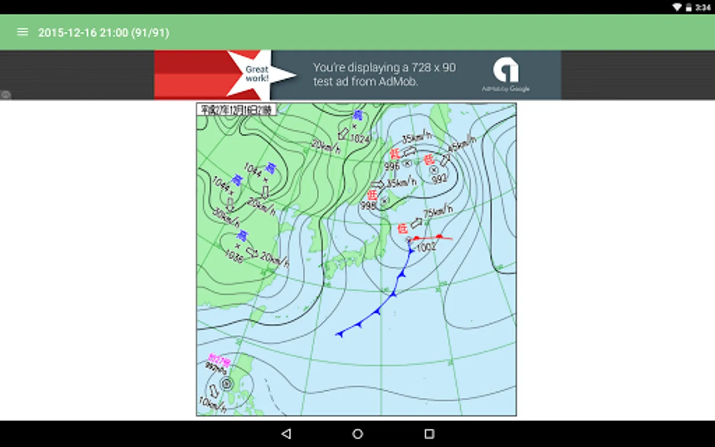(* After a major renewal at the Japan Meteorological Agency on February 24, 2021, the UI was significantly redesigned Color Weather Chart Pro has been newly released. It is compatible with Android 8 or later. For Android 8 or later users, please try Color Weather Chart Pro.)