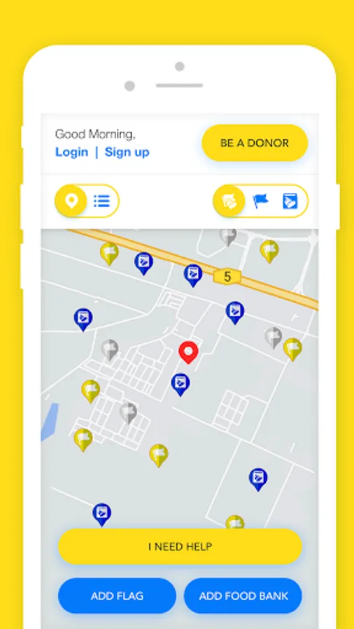 - View nearby flags/food banks via an interactive map.