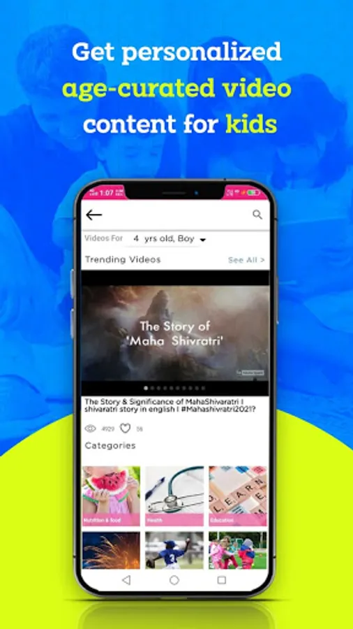 Curated video content: Our personalized video section focuses on healthy content based on your child’s age, without worrying about your child watching irrelevant content on the internet.