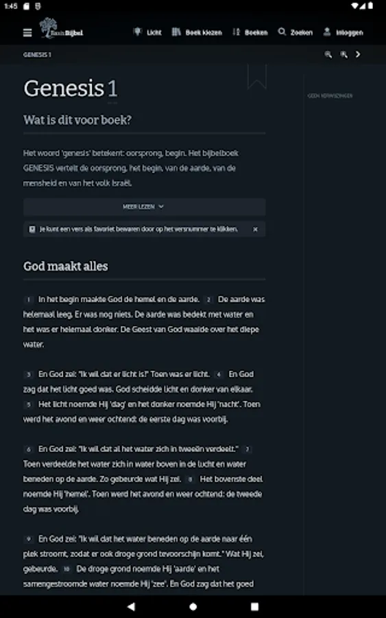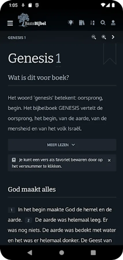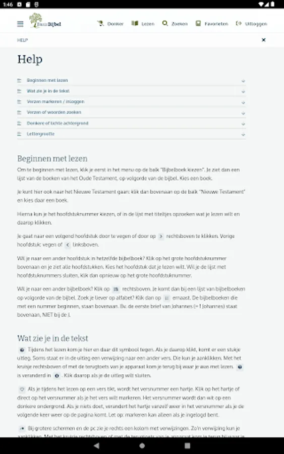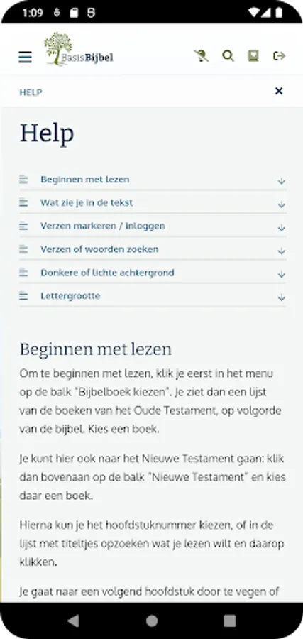 In writing this Bible was tried to use 'basic Dutch. The aim was to make the Bible for many people to understand. True Bible Words (eg flood tabernacle) are replaced by more common (large flood, tent). Here and there is text added to clarify a sentence. These words are displayed in gray. In notes things are explained and explore its links with other Bible passages.