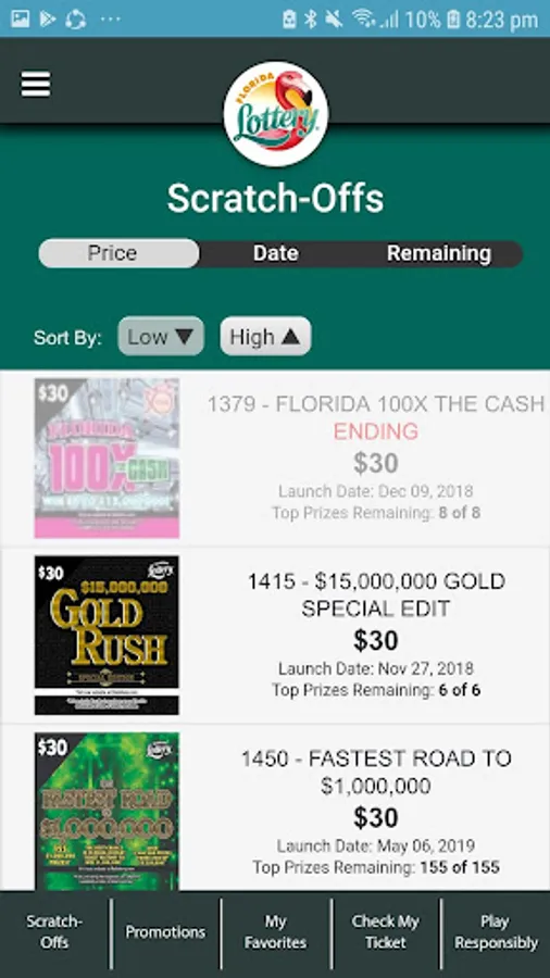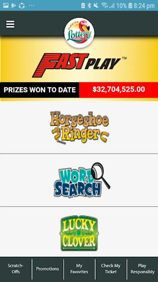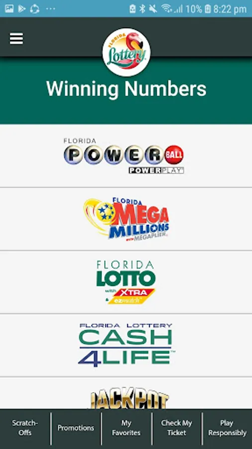 Note: the Florida Lottery does not accept wagers, bets, or payments of any kind through our mobile app.