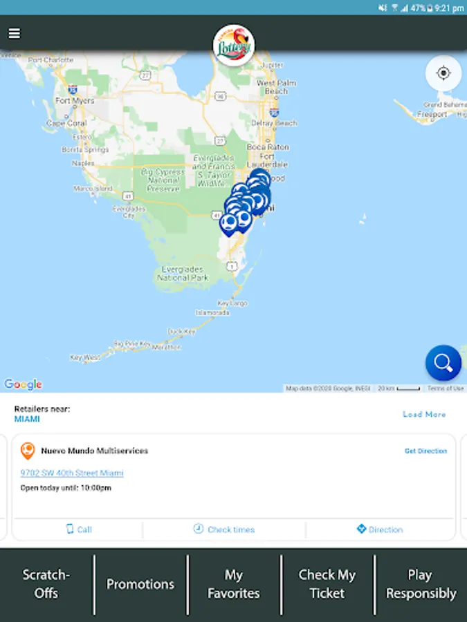 With the Florida Lottery mobile app, you can check your tickets, view winning numbers and jackpot amounts, find your nearest retailer, enter second chance drawings, and more!
