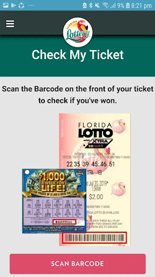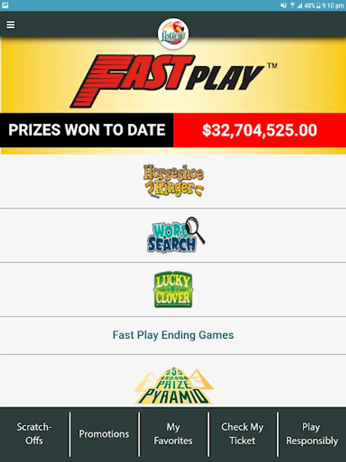 - Check My Ticket: Scan ticket barcode to determine if you are a winner.
