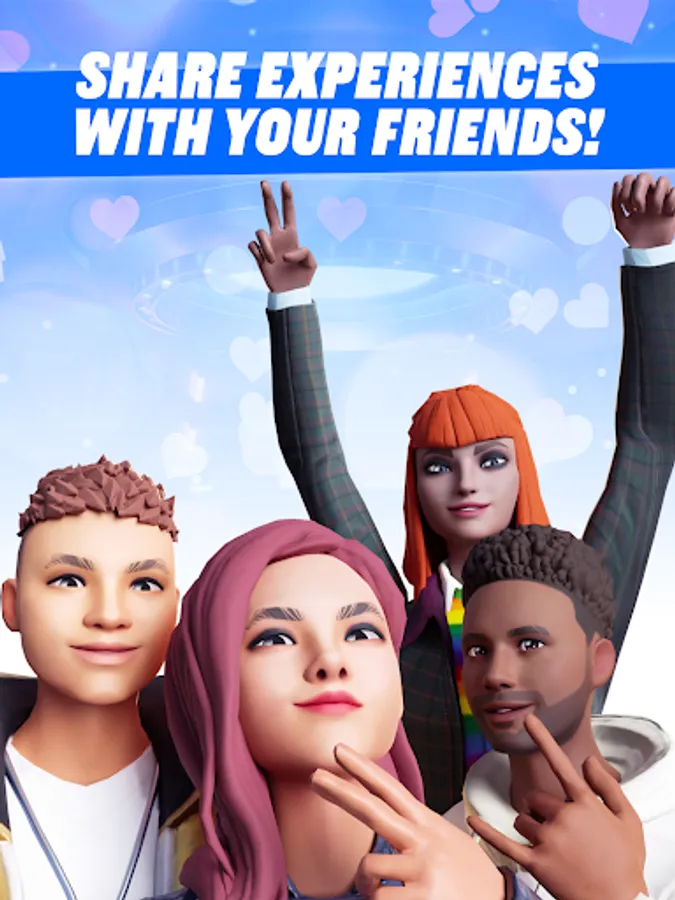 Choose from a wardrobe with a wide variety of outfits, accessories, and more, and build the 3D avatar that truly speaks your style!