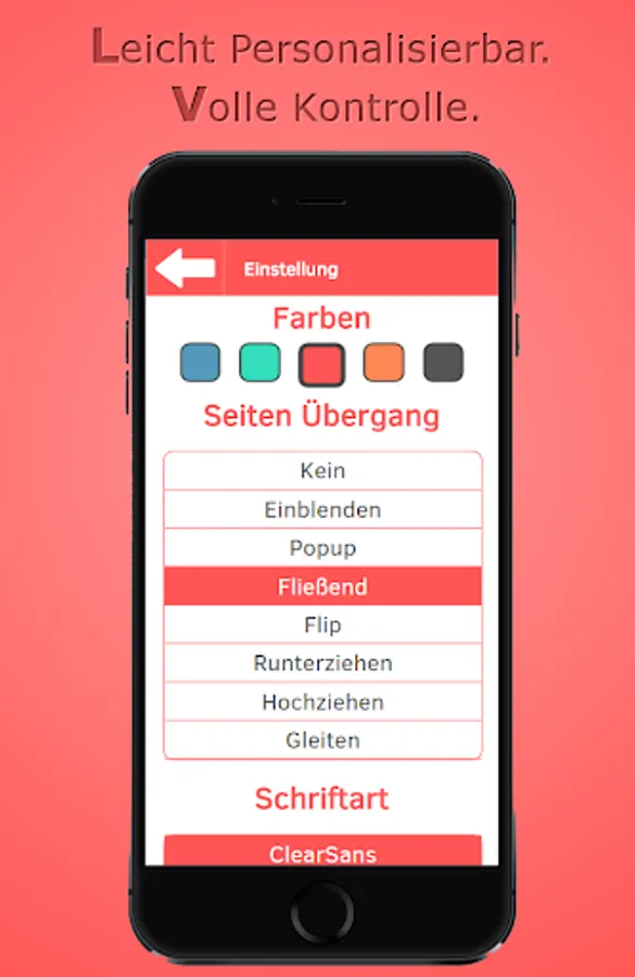[✔] your app personalized (color, font, font size, font display, page transitions)