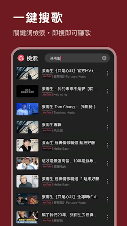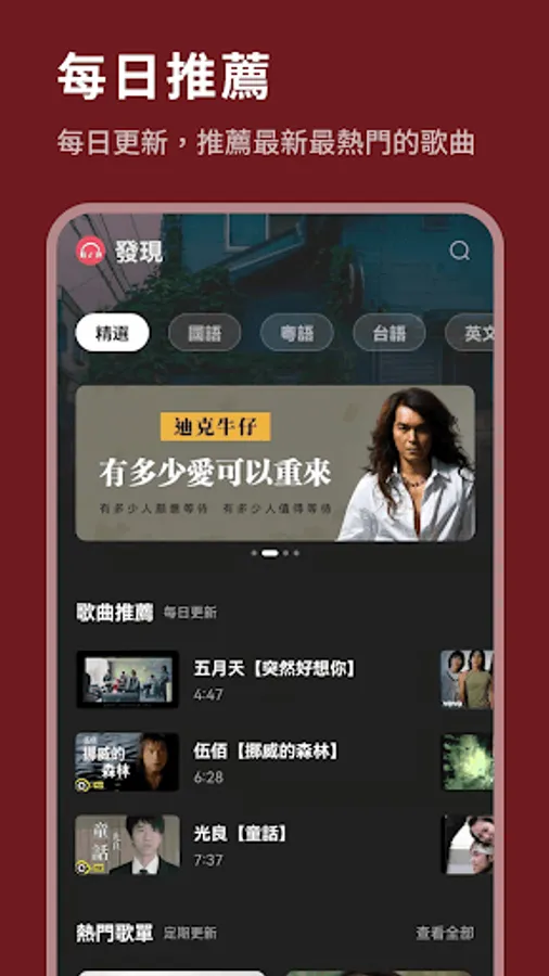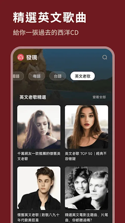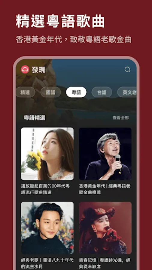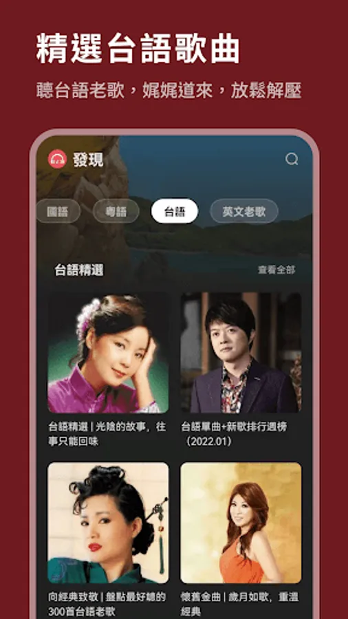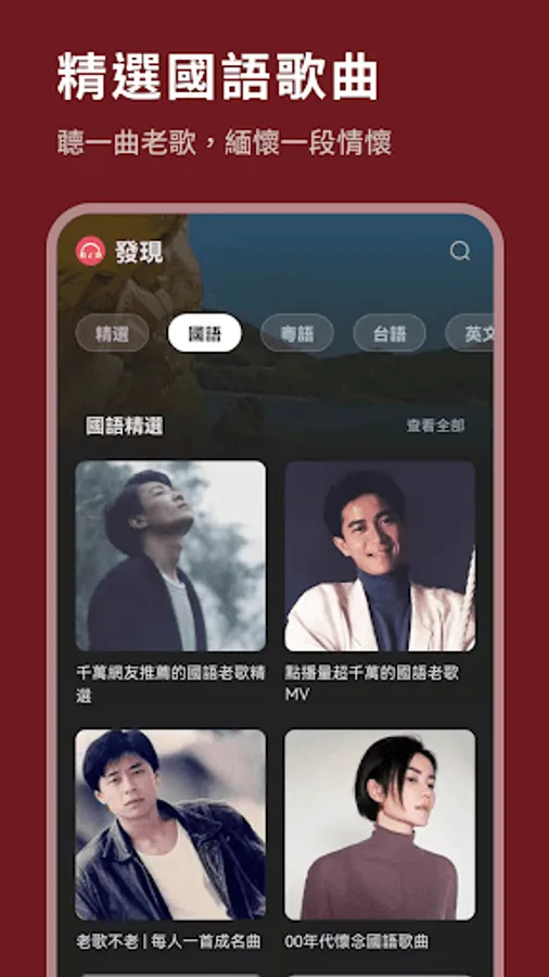 Mainly provide Mandarin songs, Cantonese songs and Taiwanese songs of the 1980s, 1990s, 1900s and modern classics;