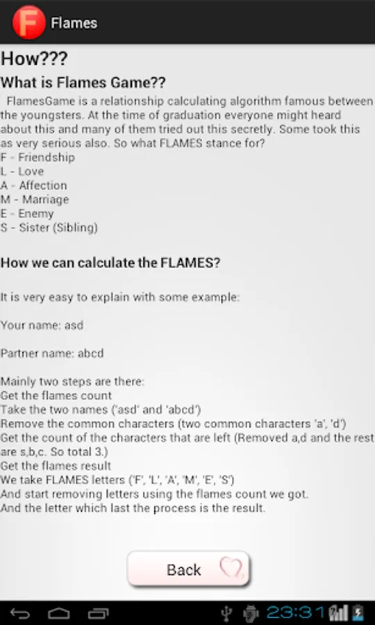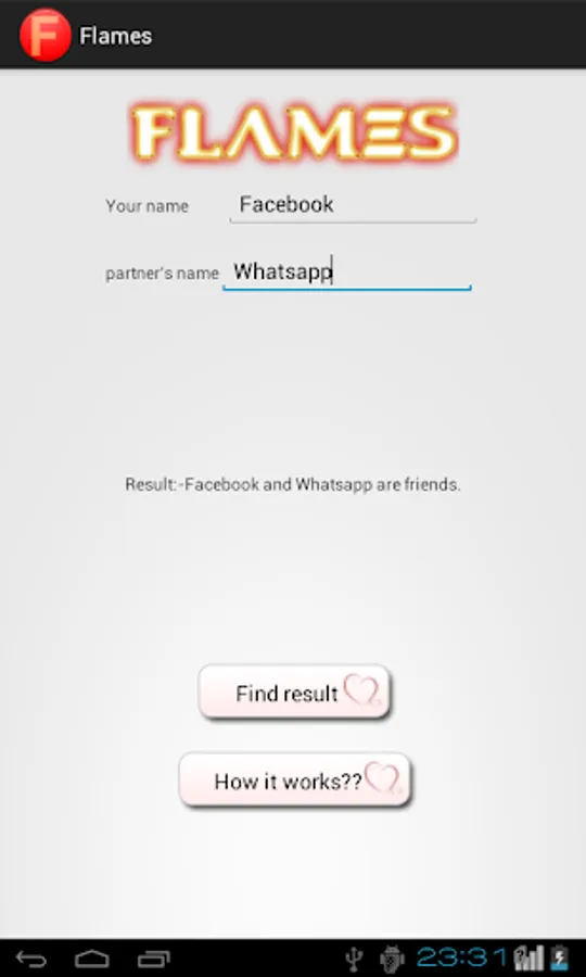 Flames Game is a relationship calculating algorithm famous between the youngsters. At the time of graduation everyone might heard about this and many of them tried out this secretly. Some took this as very serious also. So what FLAMES stance for?