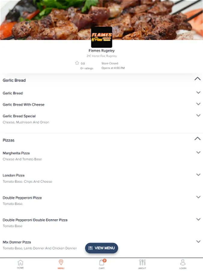 Flames Pizza And Kebab House Takeaway based in 21C Horse Fair, Rugeley, Staffordshire, WS15 2EJ. We aim to bring all of our customers the best value for money, services, and food around, plus we are constantly aiming to improve our takeaway service in Rugeley. You can now order your favorite food online for Delivery. We are very particular about our service and quality to give our customers a better experience; which is why we are now proud to offer this fantastic online ordering website.