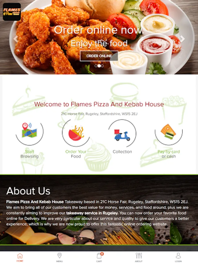 We're also available for ordering on https://flamespizzas.co.uk/storemenu and also on https://kuick.com/order/flames-pizza-and-kebab-house