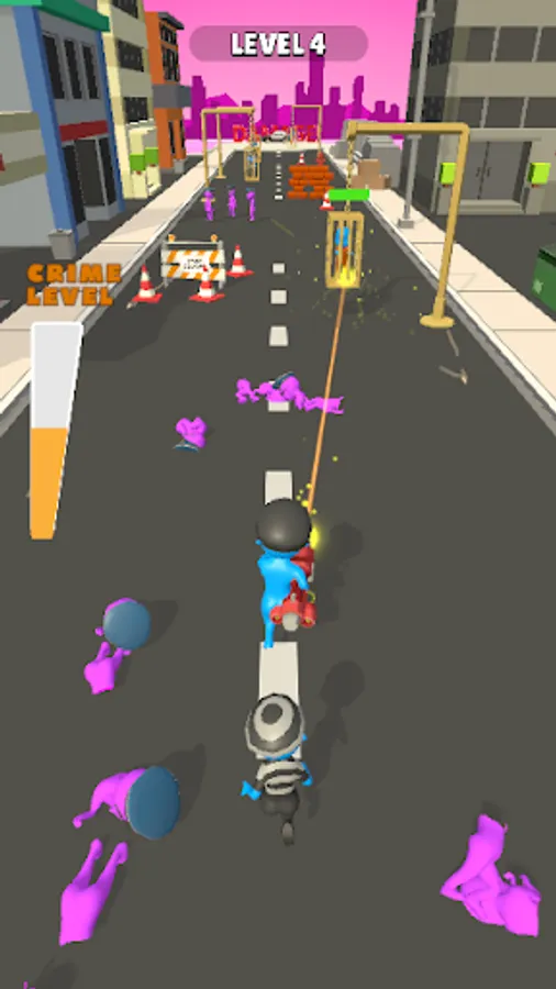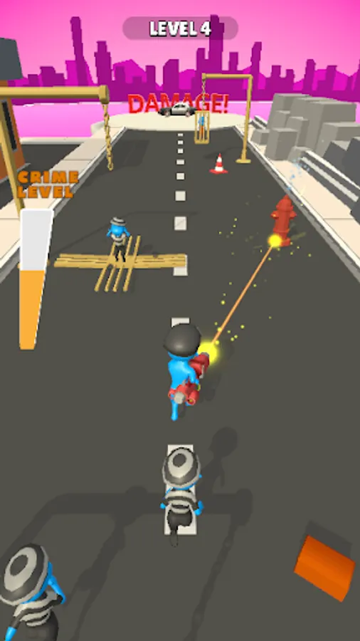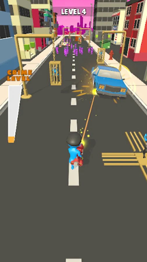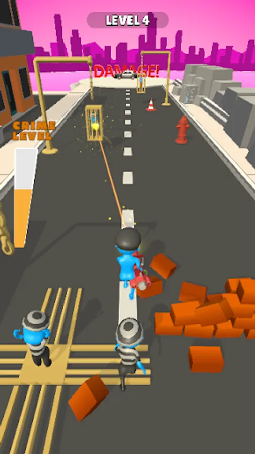 Break the jails on the road with your laser gun and free the most wanted criminals out of jail! Vandalize the whole city together as the criminals join your crime team! Slice the cops, burn the cars and challenge the snipers who wants to kill you! Try to reach end of the road without getting killed and become the most dangerous criminal in the city!