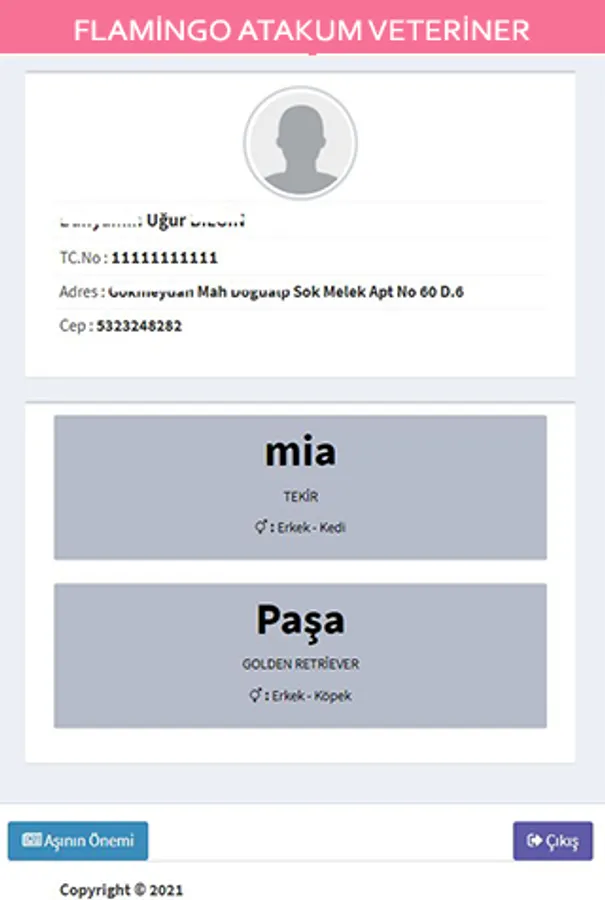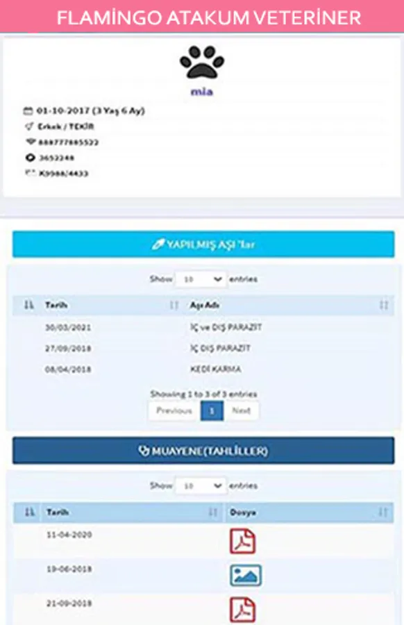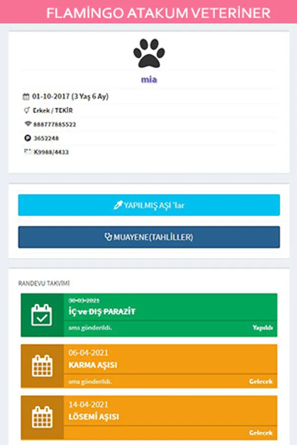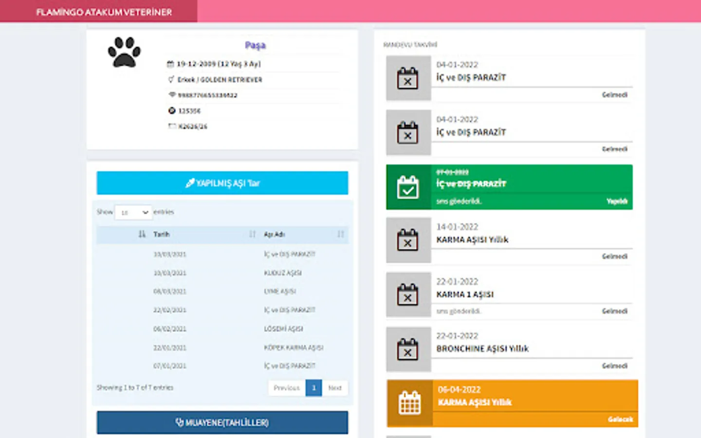 Flamingo Veterinary Clinic patient/vaccine follow-up program (Only our registered patients in our clinic can use it).