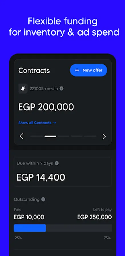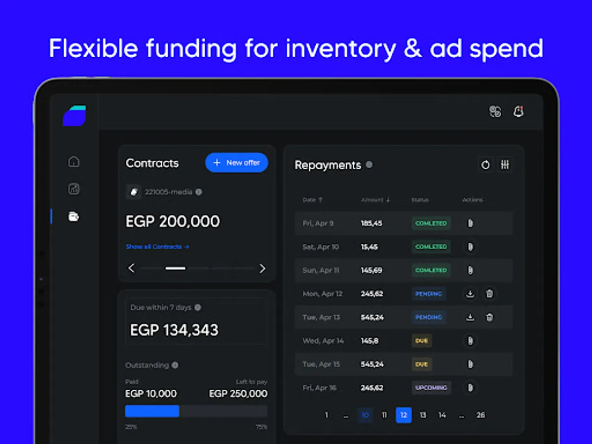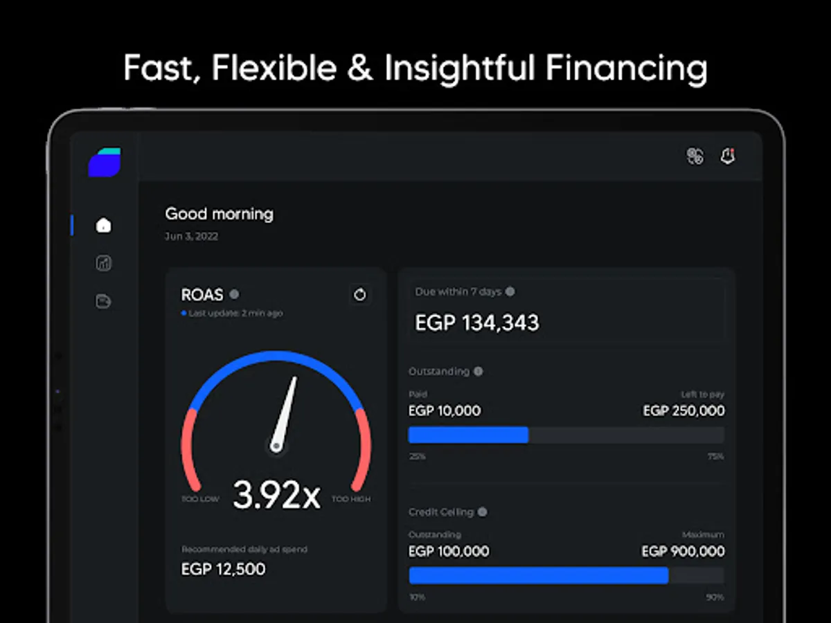 Fast, Flexible & Insightful funding for e-commerce growth. Tailored for the e-commerce businesses of the Middle East & Africa. Flexible financing for inventory & ad spend with actionable growth insights.
