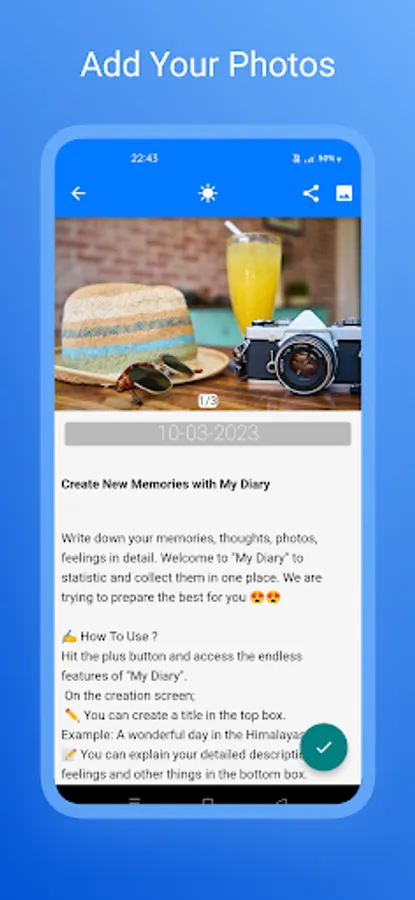"My Diary" app is the perfect tool for keeping important memories and thoughts of your daily life. Download now to explore yourself and track your personal development.