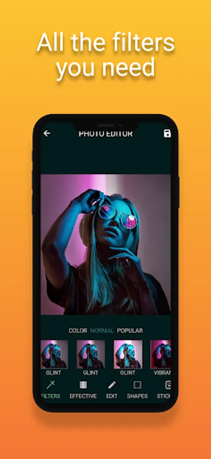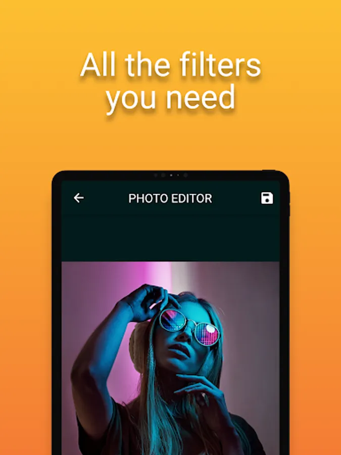 The photo editor is an app with the best filters for creating trend photos and popular photos.