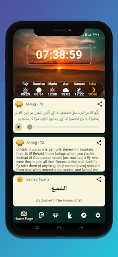 Every time you open it, it offers you different verses and the Beautiful Names of Allah.