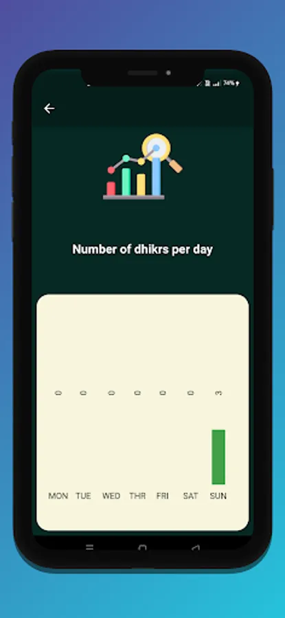 With the dhikr table, you can see which days of the week you have counted more dhikr.
