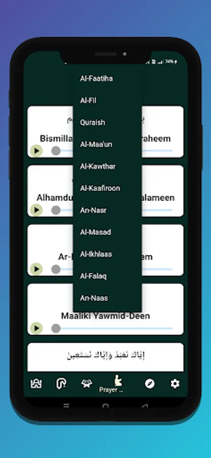 You have the opportunity to memorize the prayer surahs in English with the Qur'anic translation or in Turkish.