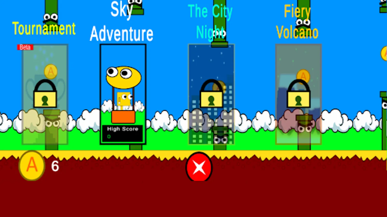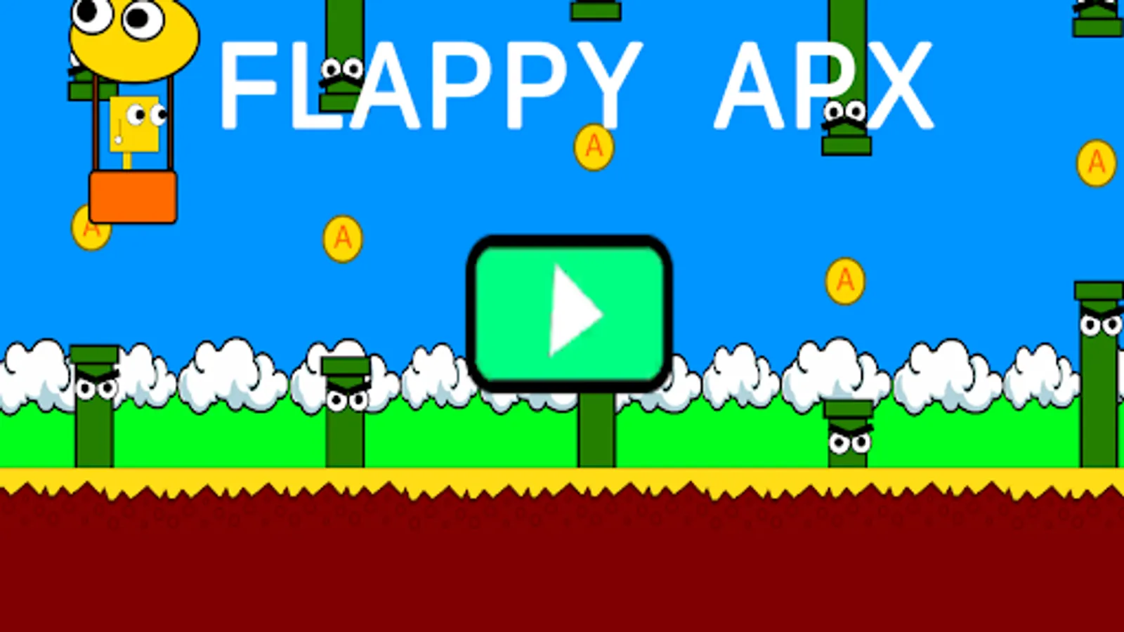 Flappy APX is an arcade-style game in which the player controls the Hot Air Balloon, which moves persistently to the right. The player is tasked with navigating the Hot Air Balloon through pairs of pipes that have equally sized gaps placed at random heights.