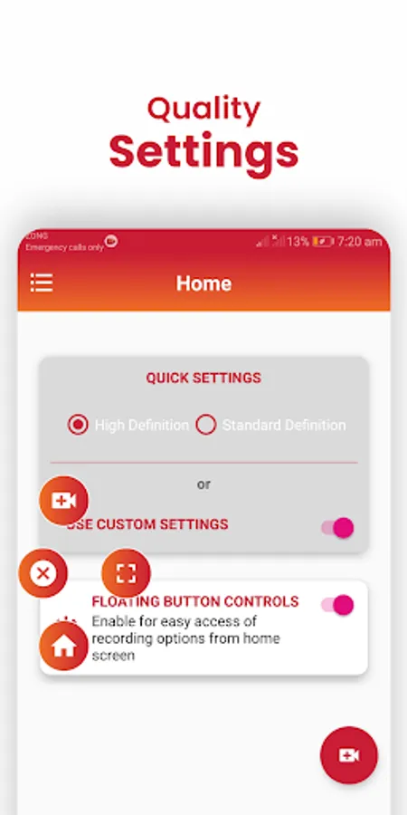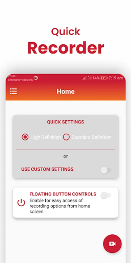 Screen Video Recorder - Smart Recorder supports recording game screens in the highest quality, 1080p, 12Mbps, 60FPS. Of course, you can record screens with adjustable resolution (240p to 1080p), quality, and FPS(15FPS to 60FPS).